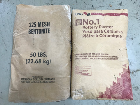 We used respirators at all times when handling the materials since there were warnings on the packaging about toxicity. For the Green Sand, we mixed about 50 lbs of sand to 6 lbs of bentonite, while spraying a fine mist of water on with a spray bottle. The exact proportion is found by trial and error. A proper mixture will allow you to create a "sausage" in your hand by squeezing the material tightly. The sausage should hold together on it's own and break apart along clean lines with some resistance.