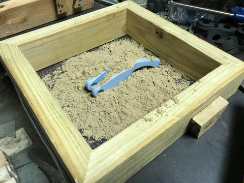 However, since investment casting destroys the part, we decided to first try a sand casting as an experiment. In a sand casting, the part is reusable since it is removed from the mold before the metal pour.