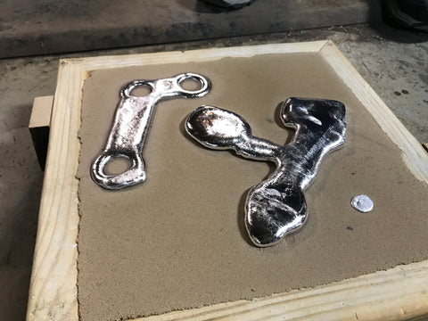 Warning: Metal casting is dangerous. Molten metal and hot objects can cause burns. Additionally, many of the molding materials are toxic. Please seek the guidance of a trained professional before attempting anything listed here. All of our metal castings were performed under the supervision of a professional metal fabricator.