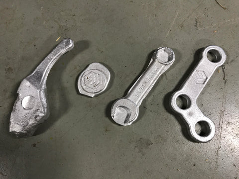 The results were mediocre yet encouraging for our first attempt. The handle came out nicely but the rest of the part was mangled. Molten metal had somehow managed to escape from between the two mold halves.