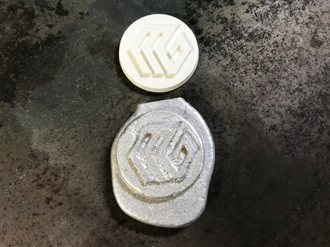 We decided to pour the medallion even though the mold was largely damaged during the extraction of the printed part. Even so, we were surprised that this casting turned out as well as it did. Next time we'll add more draft to the logo to make the printed part easier to remove from the mold.