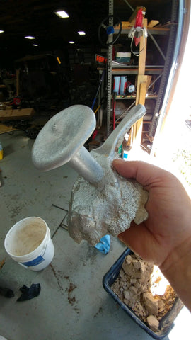 Next we tried to investment cast the part. Investment casting involves creating a plaster mold around the part, melting the part of the mold, and then pouring molten metal into the space left behind. The plaster mold is then broken away, revealing the part - or so we thought...